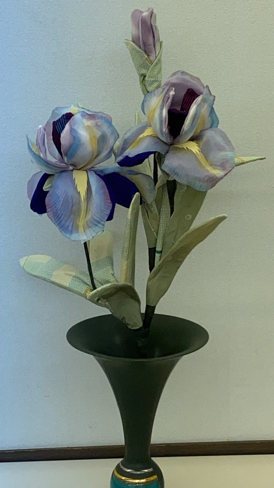着物の布を使ってつるし飾りや洋服や、帽子などを作ります。アートフラワーのような花も着物の布で作ります。世界の料理を教えています